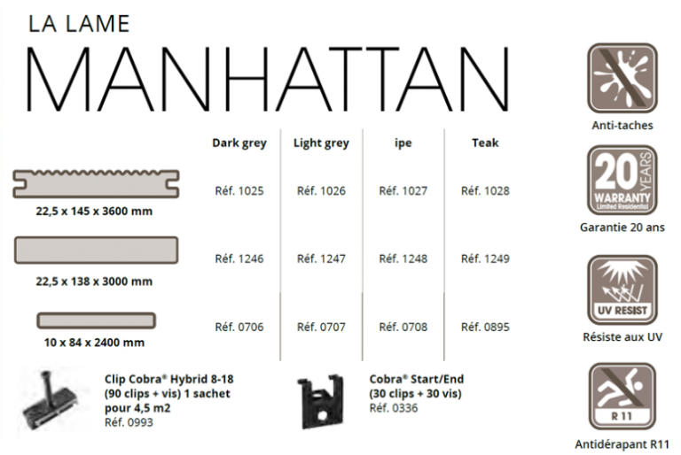 Les lames SAMBA, faites en bambou thermo-traité, bénéficient d’un traitement exclusif et breveté leur procurant une teinte claire et une durabilité renforcée. Le traitement thermique modifie la structure moléculaire du bambou puis les fibres sont enrobées de résine phénolique complétée d’un adjuvant antifongique. Ce process permet de garantir une excellente durabilité, une dureté et une stabilité parfaite pour une lame de terrasse. Proposées avec une finition huilée mate (base aqueuse), les lames SAMBA se posent à l’aide de clips invisibles Cobra Hybrid 7-22.
